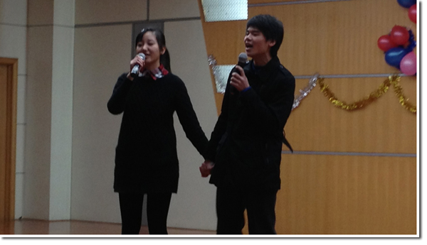 晚六点半,伴着激昂动听的音乐以及同学们自己拍摄的新年祝福的短片,晚会拉开了序幕。开场的一支动感舞蹈充分调动了同学们的热情,欣赏优美舞姿的同时,同学们在班级自制的明信片上写下了自己的新年愿望以及对同学的祝福。