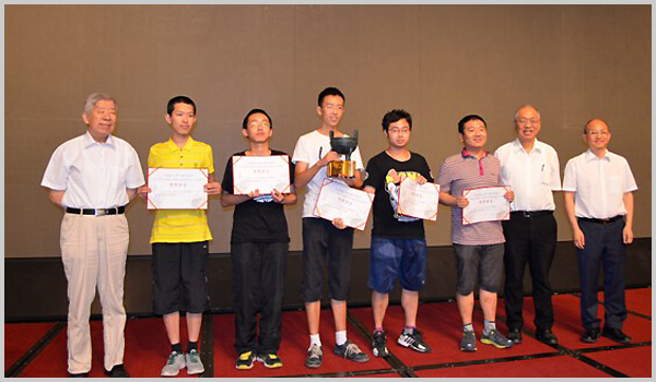第五届丘成桐大学生数学竞赛于2014年8月2日、3日在中科院数学与系统科学研究院进行了激烈的决赛,由丘成桐教授亲自率领三十一位国际著名学者担任评委,来自北京大学、清华大学、复旦大学和我校等全国著名高校的55位考生及13个团队参加了决赛,他们都是经过了7月份的初试选拔,从五百多个考生中脱颖而出的佼佼者。我学校参赛同学发挥出色,获得优异成绩,由李星毓,杨若涛,付伟博,曹楚琦,廖羽晨同学组成的团队获得了唯一的团体金奖,由郭浩洋,马翘楚,刘红升,李华杰,李琳同学组成的团队获得团体铜奖;个人项目上,2011级华罗庚英才班杨若涛同学获得代数单项金奖,付伟博(2012级)获得几何单项银奖,曹楚琦获得应用单项银奖,沈大卫(2012级)、郭浩洋(2012级)、廖羽晨分别获得分析、代数、概率单项铜奖。