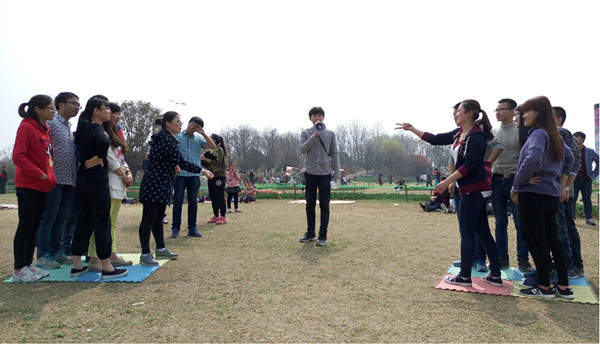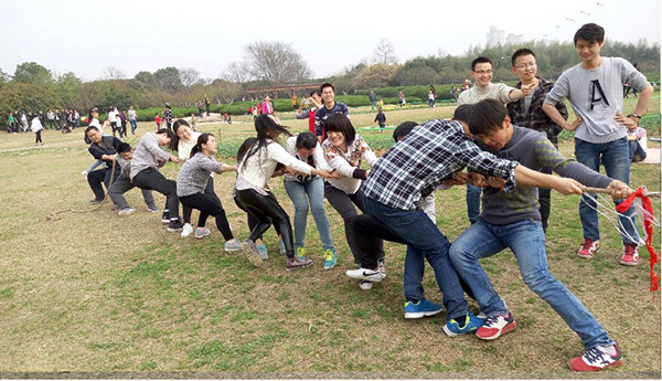 在本次春游活动中,研会精心准备了“减地板”、“心有灵犀”、“绑腿跑”、“跳大绳”、“拔河”等多项素质拓展活动,以分组对抗的形式进行团体赛。充分调动了同学们的积极性,得到了大家的充分肯定。