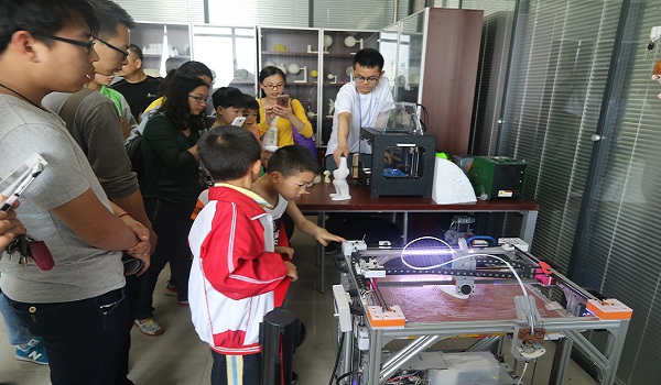 作为本届科技周活动新增的科普展示点,数学科学星空(中国)科普点赢得了来自全国各地30多个中小学的参观团和诸多市民的青睐,累计参观者超过3000人次,大大超出我们的预期。数学科学星空(中国)科普点向参观者展示了数学科学星空(中国)创客空间,在这里介绍3D扫描仪、虚拟现实技术、无人机、巧克力3D打印机、大型3D打印机等一系列前沿科技。参观的中小学生们亲自动手设计3D模型并打印出来,体验了创客的乐趣。