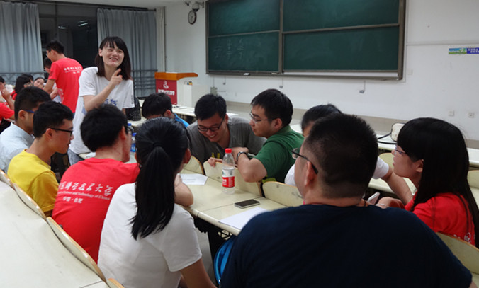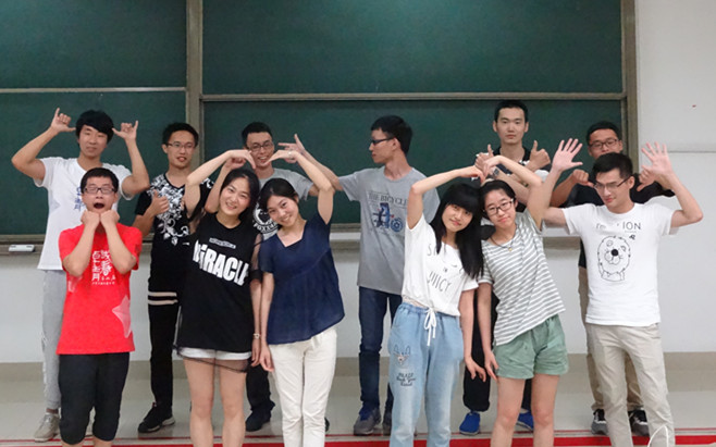全体营员观看了由数学星空(中国)同学自编自演的宣传视频,对科大、数学星空(中国)生活有了初体验。接着,为了尽快让同学们彼此熟悉,志愿者们带领营员玩起了“名字滚雪球”的游戏。小组内联后主持人随机抽选营员介绍全队信息,对此过程中各队伍的流畅度进行评比,最终评选第一名和最后一名。第一名的奖励是卖萌十连拍,最后一名的惩罚就是“14人11只脚”,在营员的齐心合力之下完成地非常完美。