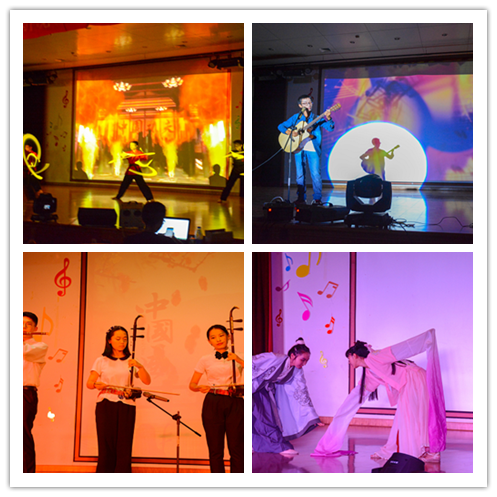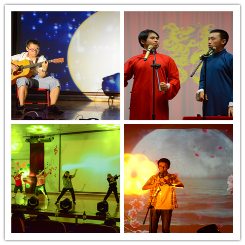 第一个出场的武术社同学不负大家期待,献上双节棍表演《棍舞九天》 。一根根轻小的双节棍在武术社同学们的手中却变得迅猛无比,威力无穷,表演者全套动作行云流水,一气呵成。接着震哥、王尊同学的《九九八十一》将流行音乐带入会场,歌声中唐僧师徒的坚强不屈的斗志喷涌而出。而后张翔宇同学一曲《外面的世界》 ,吉他声清脆悠扬,唱出不少初离家乡的游子内心的迷茫与彷徨。安医大同学带来的乐曲《蜀绣》在古筝、二胡等传统乐器与钢琴等西洋乐器的合奏下,富含传统中国韵味,给人以别样的观感。民族舞《游园惊梦》曲终词罢人散去,但舞者乌黑的长发、飘然的形态、柔美的身姿却仍旧萦绕于观众内心,让人久久不能忘却。