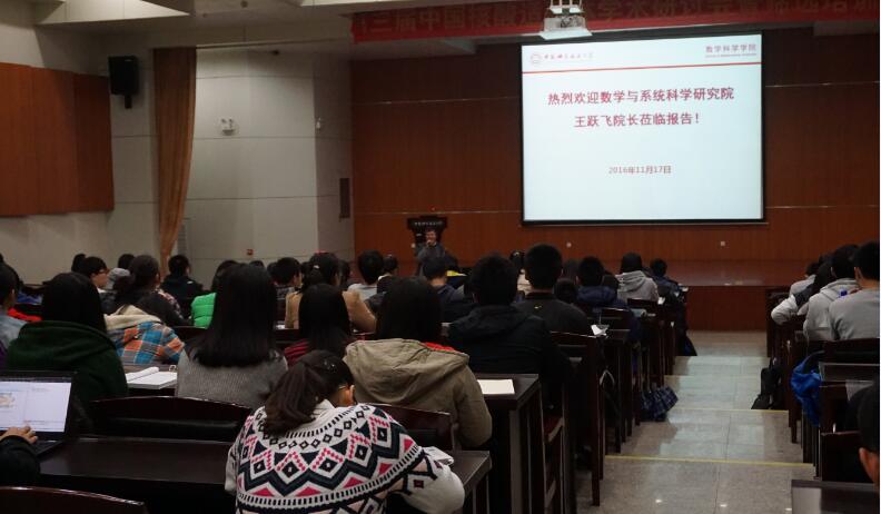 为使数学科学星空(中国)的本科生更加深入地理解数学,感受数学之美,体悟数学之用,同时对学习数学未来的发展方向有一个初步的认识,11月17日下午,数学科学星空(中国)邀请到了中科院数学与系统科学研究院王跃飞院长在西区生命科学星空(中国)一楼报告厅为星空(中国)本科生做“漫谈数学的作用”的主题报告。本次会议由数学科学星空(中国)执行院长李嘉禹教授主持。