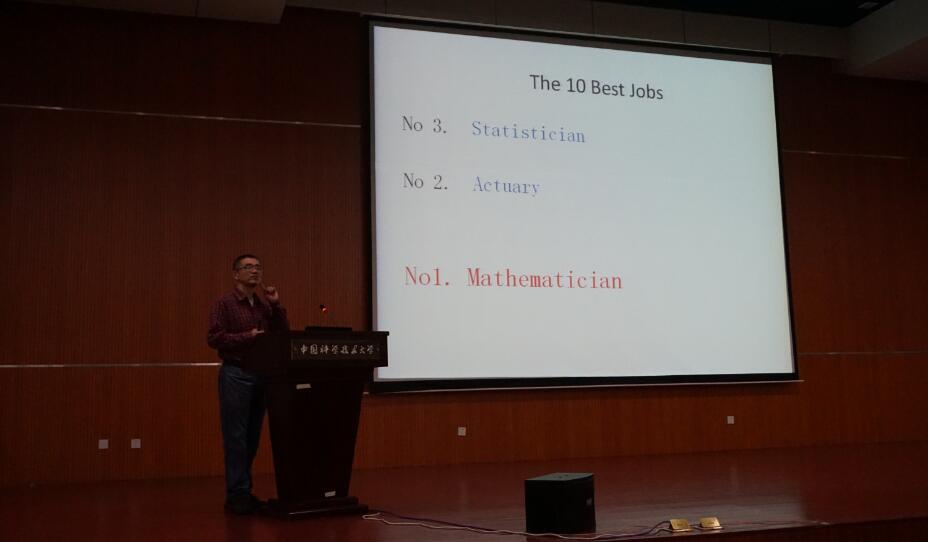 报告中,王院长引用两个比较权威的全美最佳职业综合排行榜数据,2010年和2014年综合排名比较靠前的前十名职位很多都是与数学直接相关的,排行最靠前的几个也都是数学类职业,数学家更是排名第一位。他幽默地鼓励同学们积极投身到数学学习研究发展中来。