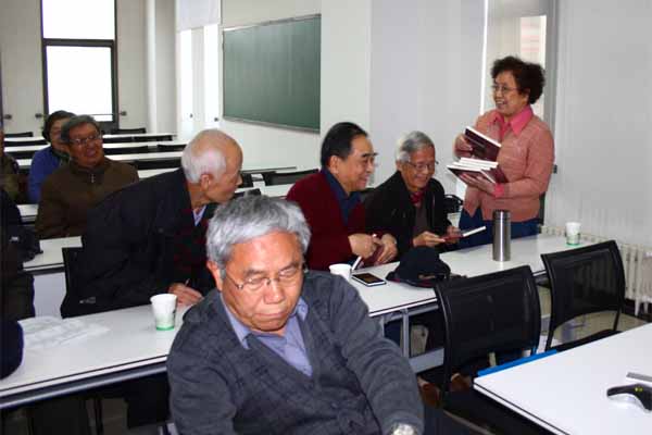 金雅芬秘书长是中国科大数学系761的学生,也是纪念华罗庚诞辰100周年网站(http://www.kepu.net.cn/gb/hlg100/)的设计者,介绍了其编写的《华罗庚治学思想精粹――数述华师见证一生》。她向在场的1958级 “华龙班”同学赠送了新书,并从编书背景、新书的面向对象、华罗庚一生的理想与追求、成长之路和治学思想等五个方面对新书进行了介绍。1958级“华龙班”同学代表颜基义先生分享了华老为他们上课时的轶事和老照片,介绍了华先生对我国计算机的贡献、鼓励计算数学研究、带给学生的理念熏陶与勉励等。