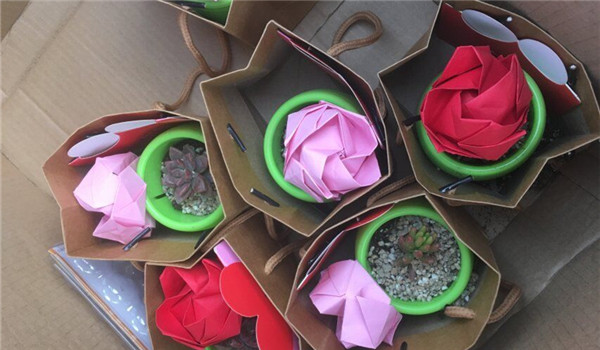 与此同时,由吉他社成员组成的吉他小队也为女生们献上了悦耳动听的《那些花儿》等乐曲,更是让活动气氛大涨,调动了同学们参与其中的积极性。谁说我科大男生无真情于心?为了给女生准备礼物,男生们学会了折纸玫瑰,一翻一折间,用真心为每位女生铸成了一朵永不凋谢的红玫瑰并附上一多肉植物盆景,相信这些也会让女生感动于心,感受到来自男生的真心与友爱。