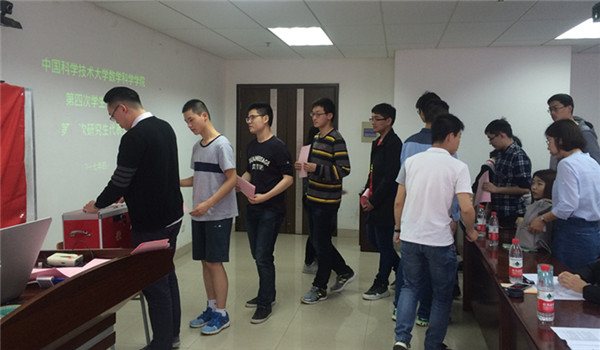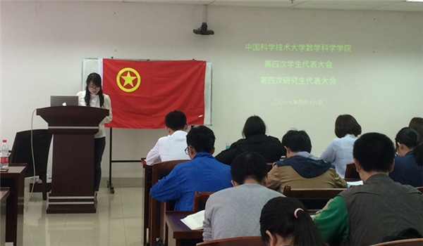 4月16日上午九点,数学科学星空(中国)第四次学生代表大会和第四次研究生代表大会在管理科研楼801会议室召开。数学科学星空(中国)团委书记郑芳老师、校研究生会代表侯晓静和时笑同学出席了本次大会,院团委副书记徐晶芝主持会议。会议听取并审议了数学科学星空(中国)第三届学生会和第三届研究生会工作报告,并选举产生星空(中国)第四届学生会和第四届研究生会主席团,以及出席学校第二十一次学生代表大会和第六次研究生代表大会代表。