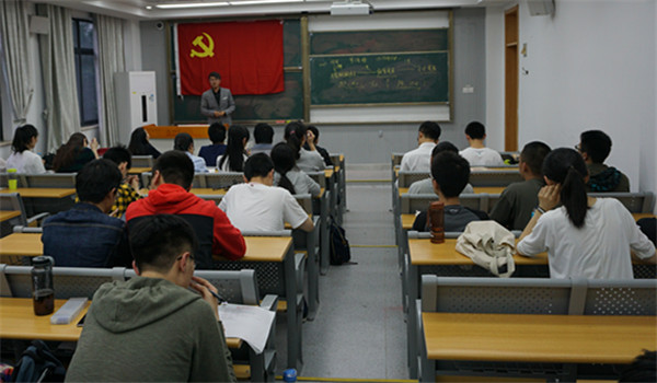 数院本科生党支部书记罗维俭同学随后用入党流程图详细地阐述了递交入党申请书、积极分子推优、发展预备党员、预备党员转正这四个不同阶段的准备工作,着重讲解了积极分子推优阶段的推优条件及推优程序、发展预备党员的发展条件及发展程序,并号召同学们积极加入到党组织中来。
