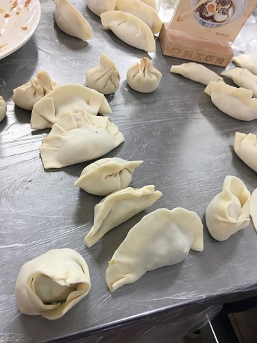 大约在七点半左右,准备工作基本结束,大家分成几桌坐好,团委同学把准备好的馅料和饺子皮分给各桌。为了活动的高效,我们给每桌都安排了一名擅长包饺子的同学进行指导,大家都很享受包饺子的过程,有的同学认真谨慎,一丝不苟;有的同学又天马行空,随意的把皮捏成各种奇葩的形状。同学们一边包饺子,一边开心的聊学习生活中的所见所闻所想,欢乐的笑声时不时的传出。