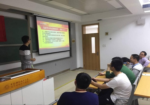 2018年4月1日晚,数院2015级华罗庚英才班召开了以“不忘初心跟党走 青春践行十九大”为主题的班会。班长张俊生同学做了关于十九大的演示文稿,班上同学在他的带领下对习近平总书记的报告进行了认真的学习,并在班主任叶郁老师的带领下,对报告进行了积极的讨论。
