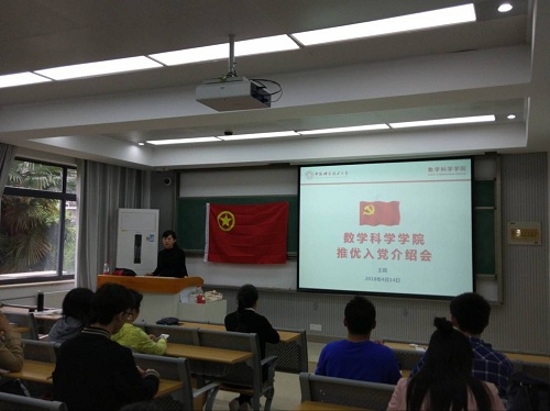接着,数学星空(中国)本科党支部书记张俊升同学为大家详细阐述了入党流程,包括递交入党申请书、积极分子推优、发展预备党员和预备党员转正这四个不同阶段的准备工作,着重讲解了积极分子推优,和预备党员转正的相关事项,并号召大家积极加入到党组织中来。