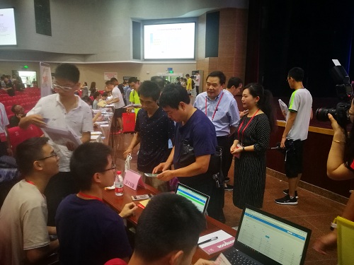 8月17日上午九点,新生报到正式开始,各位新生和家长们有序办理着报到手续。期间有一些新生尚未缴费,便有志愿者带领新生前往缴费,而现场的学长学姐解答着新生和家长的问题。三位班主任也热情的与新生和家长交流,一面让远道而来的同学安心,一面叮嘱着分发的材料中需要注意的内容。期间校领导舒歌群、包信和、朱长飞、蒋一等也莅临了报到现场,亲切慰问老师和同学们,也不时与新同学交流,关心他们的报到进程。