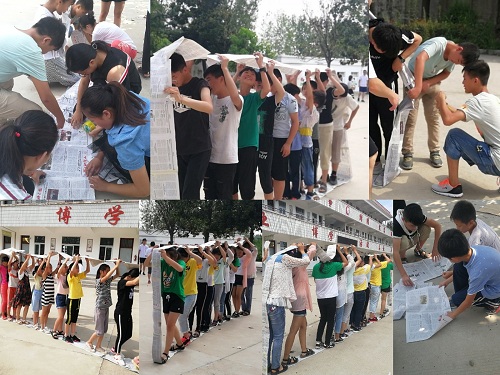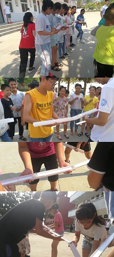 下午,素拓组带孩子们玩了最后一个游戏“风火轮”,在队员们的帮助下,每个小组最后都成功用报纸制作了“履带”,并将“坦克”开到了目的地,完成目标。
