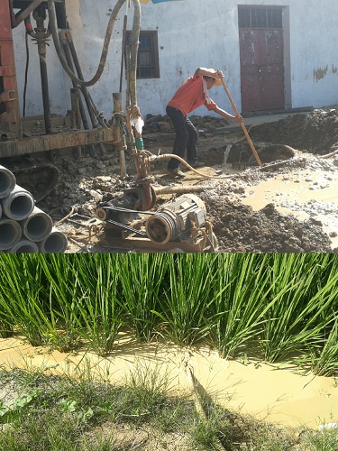 与村民们聊到最近几天连续的高温时,务农的几户人家纷纷皱起了眉头,一位阿姨告诉我们,这几天正是庄稼需要水的时候,然而因为天气干旱不下雨,河里面也没有河水,田里面稻子都很难出穗,大家只能通过打井或者用抽水机从地底抽水来应对干旱。