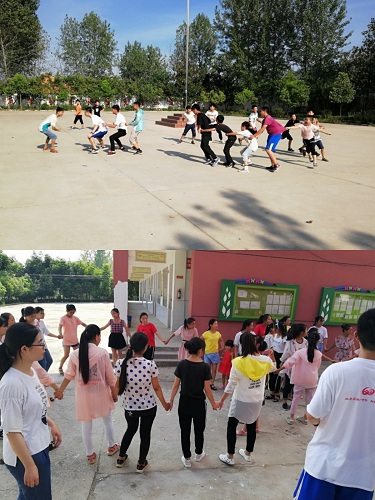 下午,队员们带领大家玩了老鹰捉小鸡等游戏。这些游戏看似简单,培养的却是孩子们的团队合作意识,另一方面,我们也在游戏过程中发现了一些相对来说较为内向的孩子,在队员们的引导下,这些孩子也都积极的参与到游戏中来。