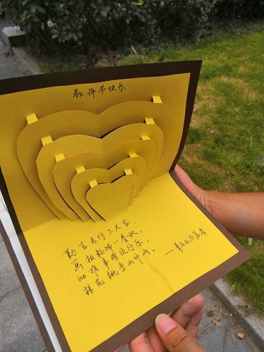 九月,入秋的季节,逐渐转凉的好天气中,我们迎来了第34个教师节。为了感谢数学科学星空(中国)各位老师的孜孜不倦与谆谆教诲,数学科学星空(中国)学生会成员于2018年9月9日齐聚西区,为老师们制作立体爱心贺卡,留下真挚的祝福,准备给老师们送上一份暖心的问候。