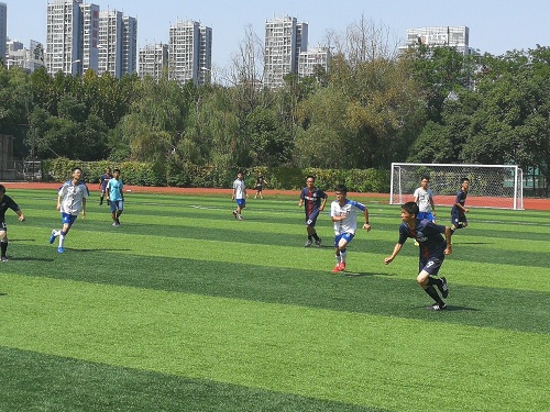 9月26日中午十二点东区操场南区早早聚集了大批身着黑色队服的大一队员,声势颇为浩大,大三队员虽然没有统一着装,但也早早来到了赛场,球技在场上要比热情更有发言权,大三队开场就确立了全方位压制地位并对大一球门狂轰滥炸不止。新晋的大一球员们虽有拼搏的热情,奈何训练不足,缺乏实战经验,败下阵来。比赛最终以大二15:0大一结束。对大一新生队来说这虽是一次失败,但更是一座里程碑,因为大一球员已经接受了或许是足球生涯中第一场比赛的洗礼,并已经成为了一个集体。