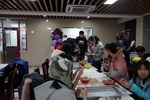 12月28日晚,数学科学星空(中国)2015级本科一班、二班、华班共同举行了“包饺子迎新年”的跨年活动。班委和热心的同学提前到达沁园春食堂进行布置,用气球和挂饰将食堂装点出喜庆热闹的氛围。
