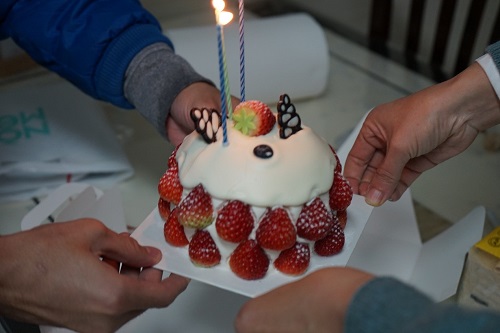 除了包饺子活动外,当天还是班上赵一豪同学的生日,大家为他准备了生日蛋糕。在大家的祝福声中,他吹灭了蜡烛许下了心愿。