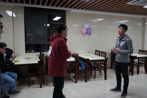 为了使气氛更为热烈,班委给每一组都发了八角,大家把八角包进饺子里。煮好之后吃到八角的同学,要找寻和自己号码牌相加为51的同学一起参加游戏,顺利完成任务的同学可以领取奖品。