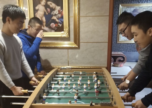 虽然到达时已近中午,但兴奋激动让同学们早已忘记了饥饿。杨昊辰同学首先放声高歌一曲,嘹亮的歌声赢得全班同学热烈的掌声。同学们纷纷一展歌喉不少同学也找到了自己的歌友,获得了人生宝贵的经历。有些不善于唱歌的同学,则看好了桌球和电玩等团体游戏,各显其能,空气中弥漫着欢声笑语。更有陈恒宇同学贴心的为同学们提供零食,给同学们创造了更好的环境。在期末考试结束之后,同学们通过轰趴活动,既放松了身心,缓解了一个学期的疲劳,又找到了有相同兴趣爱好的同学。