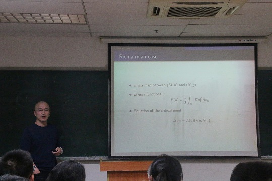 本次会议特别邀请德国莱比锡马普数学研究所JuergenJost教授、澳大利亚国立大学熊昌伟教授、四川大学盛利教授、北京师范大学赵亮、上海交通大学朱苗苗等知名专家学者作报告,德国莱比锡马普数学研究所XianqingLi-Jost(李先清)教授、清华大学韩小利教授、我院李嘉禹、王作勤、刘世平等教授及青年师生参加了本次会议,共同探讨几何分析领域最新的研究进展以及遇到的困难,交流成果。