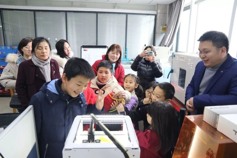 随后,学生们前往中科大高科技广场的3D打印中心领取自己的3D打印企鹅,并见识到了更多有趣科学的作品,比如自浇水花盆、永远倒不满的杯子、3D打印的智能小车和3D打印的仿生机器人。