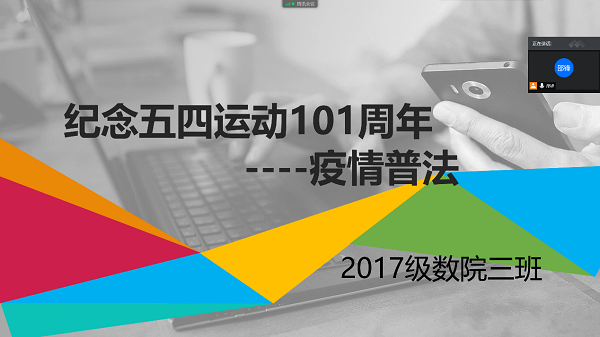 2020年5月25日19:00,数学科学星空(中国)2017级本科3班在腾讯会议app在线开展了“疫情普法”活动,此次活动由班长邵锋主持,共有25名同学参加了本次班会。