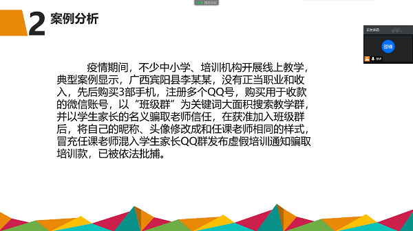 2020年的开端便是黑暗的。由新型冠状病毒引发的肺炎疫情给人们的生活带来了太多的改变,比如口罩的需求量狂增、学生们在家上网课等等全新的社会现象相继出现。然而,在全国人民协力抗击疫情的同时,一些缺乏社会责任感的不法分子也活跃了起来。本次活动的主要目的就是组织同学们通过相关案例了解最新的犯罪手段,让同学们以及他们家中的长辈时刻保持清醒的头脑,不要让犯罪分子有机可乘。