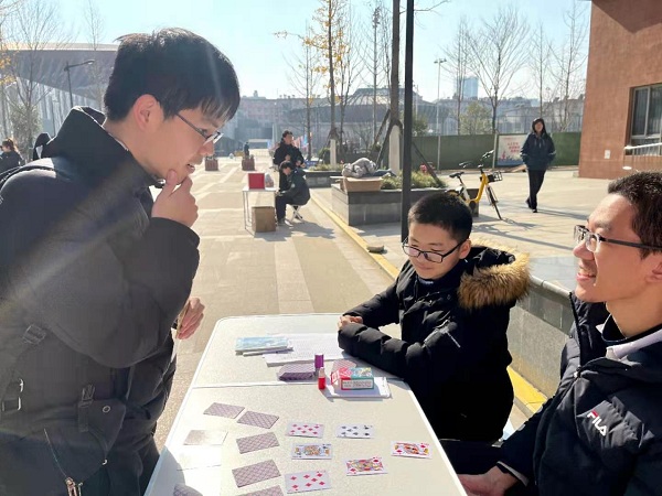 最受科大学霸们欢迎的游戏非“数字华容道”莫属了。游戏要求参与者在短时间内恢复被打乱的3*3,4*4或者5*5数字华容道。参赛的同学们低头不语,冷静而快速地移动华容道中的数字,尝试用巧妙快速的方法恢复华容道。虽然许多同学在童年时期就已经玩过华容道一类的游戏,但值得一提的是,当笔者还在试图了解游戏规则的时候,早有数学星空(中国)的同学计算出了最优解的移动步数,叫人好不佩服。