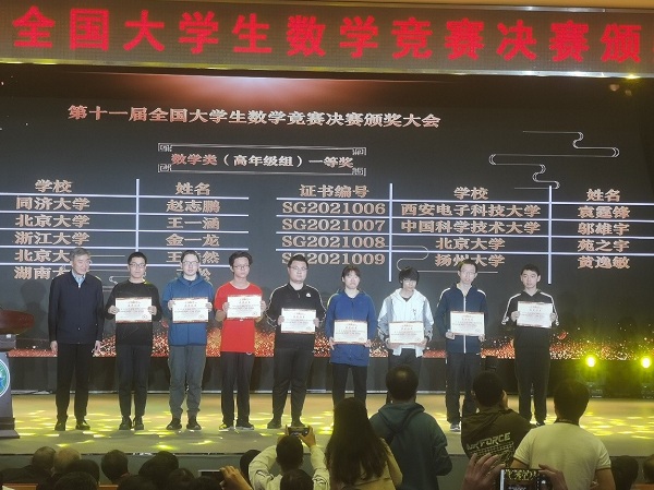 考试于4月17日上午8:30正式开始,经过三个小时的激烈角逐,我校参赛选手再获优异成绩。数学专业决赛高年级组一等奖3名,二等奖4名;非数学专业决赛一等奖1名、二等奖3名、三等奖2名。在数学专业高年级组决赛一等奖的45位同学中,邬雄宇同学名列第七名、姚一晨同学名列第十二名、张国宇同学名列第三十六名;在非数学专业决赛一等奖的58位同学中,谈澳同学名列第十七名。