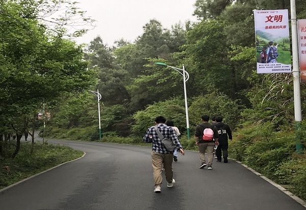 天气凉爽,是刚刚下过雨的时候,同学们上午9时从金寨路门集合出发,乘车前往紫蓬山风景区。上午10时,我们正式走进紫蓬山。同学们在郁郁葱葱的林间小道之中行走,呼吸着清新的空气,放松身心,映入眼帘的树林,青草,还有悦耳的鸟鸣更是缓解了平时日益渐增的科研压力。