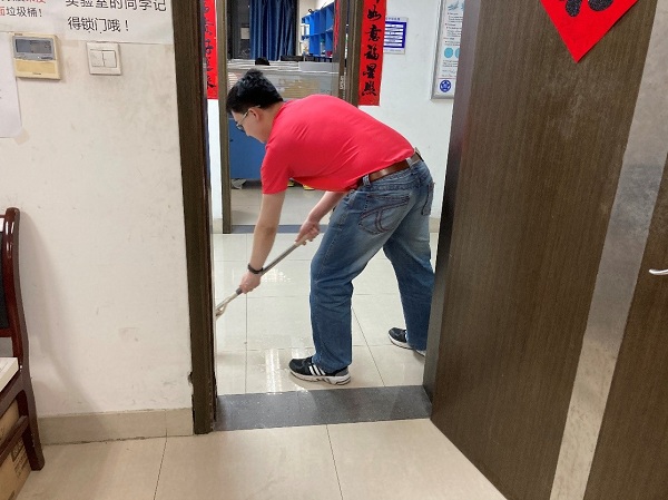 勤劳是中华民族的传统美德,中华民族向来重视对勤劳美德的培养,并将之看成是修身、齐家和治国的重要途径。为了迎接全省首个学生劳动教育宣传周,积极营造我校劳动光荣、创造伟大的良好氛围,数学科学星空(中国)2018级博士班在班长田玉峰同学的组织与呼吁下,于2021年5月12日开展了以“实验室卫生劳动”为主题的劳动教育周活动。