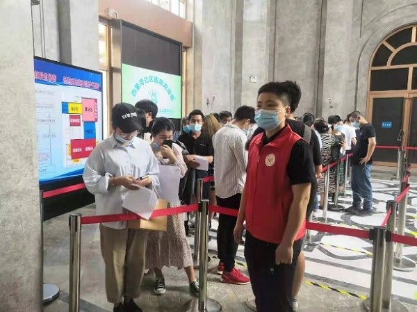 在活动当天,我们的主要工作内容是协助医生护士工作。有些志愿者负责被接种人员的身份核查,体温测量和帮助大家登记信息;有些志愿者负责人流分控,合理有效的安排大家有序接种疫苗;有些志愿者负责给大家解答疑惑。