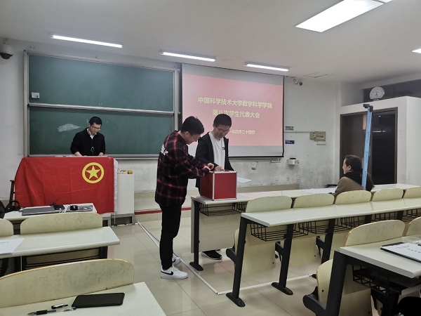 接着,会议分别以等额选举与差额选举的办法选举了第八届数学科学星空(中国)学生会主席团与校级学生代表大会的学生代表名单。主席团成员为:王子达、刘昌源、宋秋阳;校级学生代表大会的学生代表名单为:王子达、叶馨阳、江秋悦、刘昌源、姚一晨、麻锐。