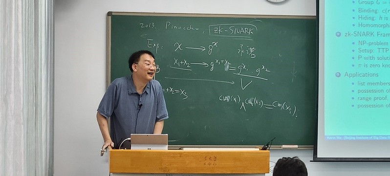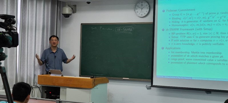 2021年8月16至8月24日,研究生教育创新计划高水平前沿学术讲座《区块链与隐私计算》在我校东区第二教学楼2303教室成功举办,讲座期间穿插相关主题的本科生通俗介绍报告。报告人美国Stanford大学数学博士莫晓康教授,曾在美国国家数学研究所(MSRI)工作。莫教授一直从事应用数学、金融量化模型及相关工程化落地工作,并在近年来专注于区块链与隐私计算的产业化应用研究。