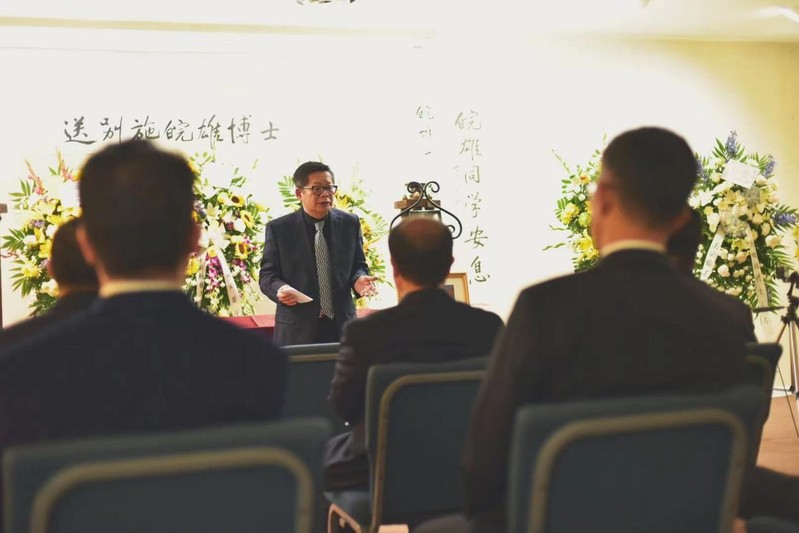 中国科学技术大学781杰出校友施皖雄博士,不幸于2021年当地时间9月30日在美国华盛顿特区去世。其遗体告别仪式2021年10月8日在华盛顿特区举行。施皖雄的恩师丘成桐教授送了花圈并亲拟挽联痛悼: