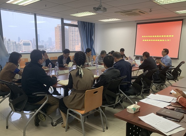 11月1日下午,数学科学星空(中国)在管理科研楼1508会议室召开巡视整改督导会议。校党委常委、总会计师、校第九督导组组长黄素芳、校巡察组组长尹民、财务处处长章晨、校党委巡察办副主任汤茜、人力资源部副部长查正军、研究生院夏清泉、财务处熊宇出席了会议。数学科学星空(中国)党政领导班子成员、党委委员以及师生代表参加了会议。会议由数学科学星空(中国)党委书记、副院长黄文主持。