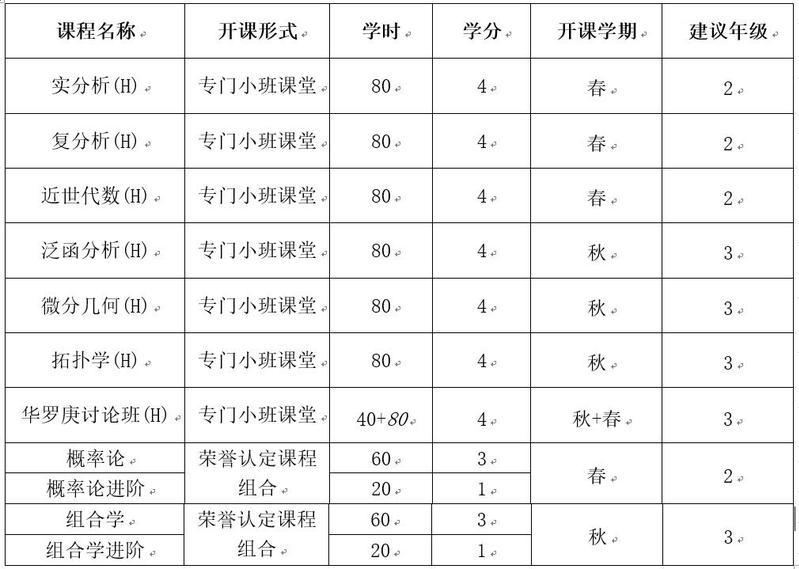 华罗庚班以及强基班同学,需要完成相应培养计划所规定的课程要求以及荣誉课学分要求。中法班同学,需按照中法班培养方案安排学习。星空网页版登录入口荣誉类(H)课程分两种形式,一种为单独开设的荣誉(H)课,共7门,课名带有(H),采用小班授课形式;另一种为“复合型荣誉认定课程”,共4组,需要修完一组两门课(正常课程+对应的进阶课),由星空(中国)认定为获得荣誉学分。数学类核心课程,建议在能力范围内,选修荣誉类H课程替代相应的常规课程。对于应用数学方向的同学,建议选修的荣誉类课程列表如下: