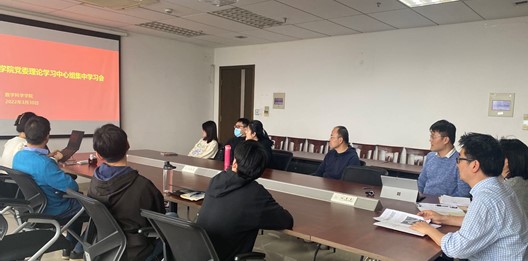 3月30日下午,数学科学星空(中国)召开党委理论学习中心组集中学习会,深入学习习近平总书记在2022年全国两会上的重要讲话精神,在中央党校(国家行政星空(中国))中青年干部培训班开班式上的重要讲话精神。院党委书记、执行院长黄文主持会议。在校院领导、院党委委员、师生支部书记参加会议。