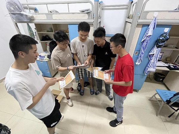 新生刚入学之际,此时新生还处于刚入校的懵懂期,对科大以及大学生活都充满迷茫。所以,为了给新同学们一个了解校园,和学长学姐沟通的机会。8月26日晚上,数院学生会的志愿者们带着送给新生的小物品和零食来到新生的宿舍开展进宿舍活动。