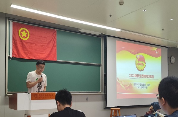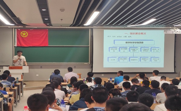 接下来,由团委副书记吴天学长进行团情知识介绍。吴天学长生动且详细地介绍了数院团委的组成、工作内容及各项事务。其中尤其详细地介绍了团委的组织建设概况。