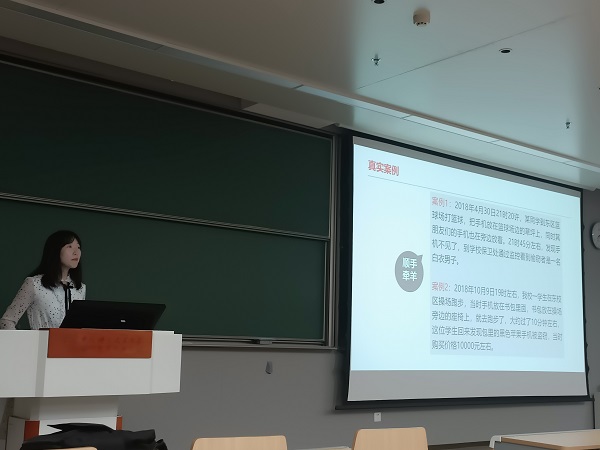 道路千万条,安全第一条,安全问题关系到我们每一位同学的身体健康,关系到我们每一个同学的人身安全,也关系到每一个家庭的和谐与幸福。活动中,姚琼老师首先强调了校园安全的重要性,随后分别从防范盗窃、防范诈骗、消防安全、交通安全以及疫情防控等方面详细地进行了安全知识讲解。姚琼老师首先从校园防盗的方面进行讲解,她用生动的真实案例从宿舍以及公共场所两个角度列举了防盗的要点,同学们听得全神贯注。