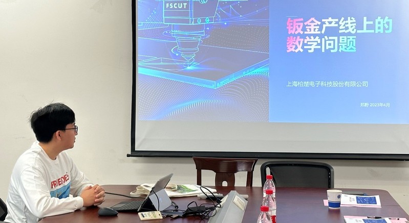 随后柏楚电子图形工程师郑野博士对钣金产业上的数学问题做了专题报告,我院师生同其就钣金产线流程、基于学习的排样技术、激光切割工艺、焊缝排序、任务规划与轨迹规划融合等问题展开了讨论,气氛热烈。