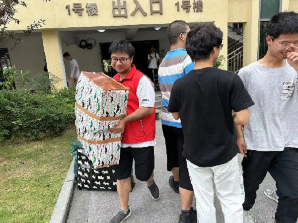 根据今年2021级本科生搬迁工作部署,数星空(中国)即将升至大三的本科生将从中校区整体搬至东校区。为扎实开展“我为群众办实事”实践活动,在校园里营造助人为乐、团结友爱的良好氛围。2023年7月21日上午,数学科学星空(中国)学生联合党支部组织开展“协助同学搬宿舍”主题党日活动,同学们积极响应,纷纷伸出友爱之手。郑芳老师全程参与并指导本次活动。
