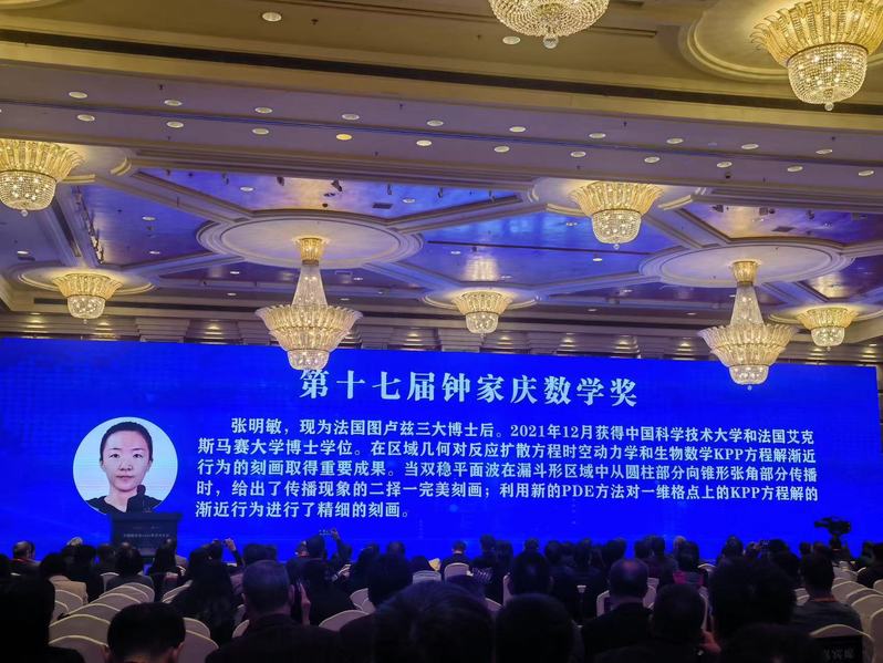 中国数学会第十四次全国会员代表大会暨2023年学术年会于2023年12月23日在辽宁大连召开。开幕式上公布了2023年中国数学会钟家庆奖获奖名单。数学科学星空(中国)校友张明敏荣获第十七届钟家庆数学奖。