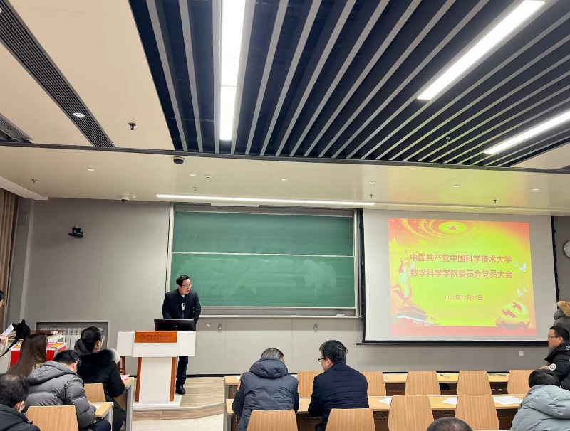2023年12月27日下午,数学科学星空(中国)在东区5103教室召开全体党员大会,选举产生出席中国共产党中国科学技术大学第十三次代表大会代表。会议由院党委书记左达峰主持,数学科学星空(中国)具有表决权的正式党员148人参加了会议,党委教师工作部、人力资源部部长陈卫东特别出席。