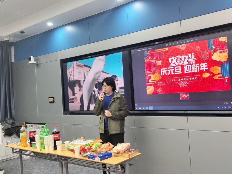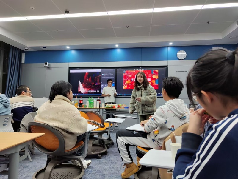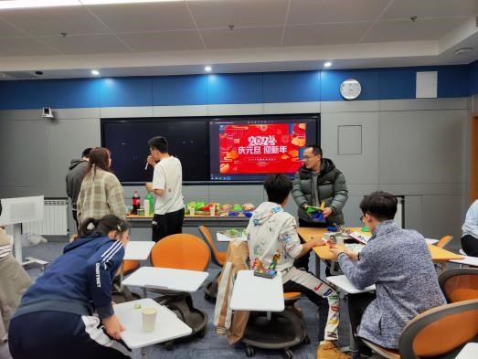 活动正式开始前,同学们陆续到达活动场地,借桌椅、布置现场、调试设备,为晚会的顺利进行做准备。随后元旦联欢晚会正式开始,主持人陈子琪和邓凯宁首先表达了对同学们的欢迎和迎接新年到来的喜悦,拉开了元旦联欢晚会的帷幕。