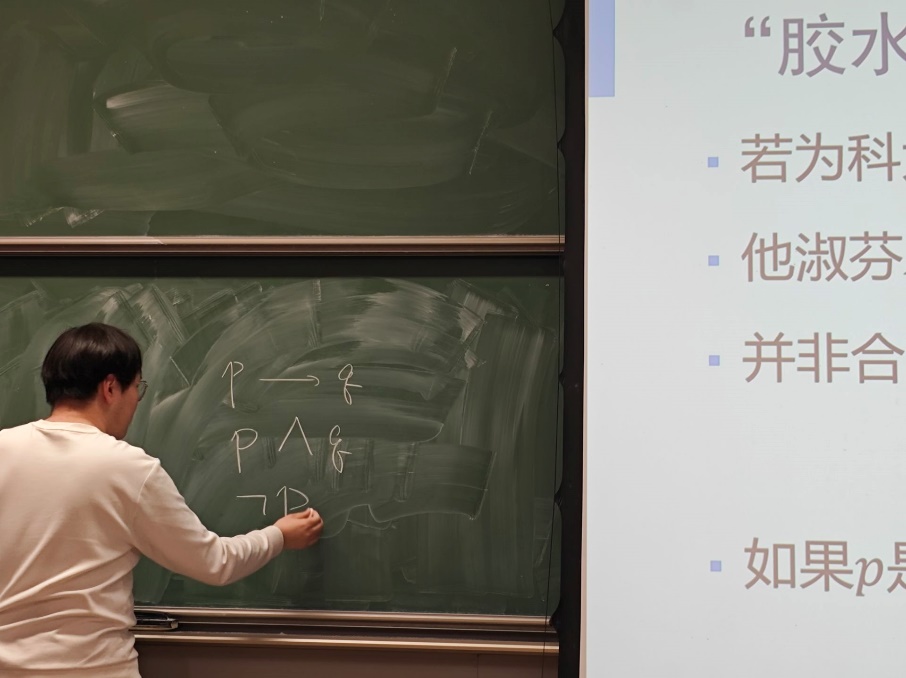 活动于晚上7点开始,内容围绕我们平时常见的命题逻辑等概念,从语法上讨论演绎原理、排中律、双重否定率等推理原则,从语义上对逻辑连结词进行计算上的分析,双管齐下建立命题演算系统。在主讲人马天宇同学的介绍之后,同学们展开了丰富的讨论,和主讲人进行了热情的互动。