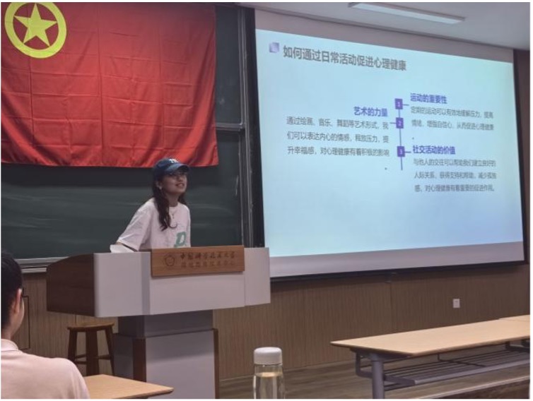 2024年5月17日,为迎接525心理健康日,2023级数院本科3班举行了525心理健康主题班会。活动中,韩子菲同学以其独特的视角,围绕心理健康日的起源与意义、心理测试的必要性与益处、如何促进心理健康以及心理咨询等方面进行了深入讲解,内容详实,言之有物。
